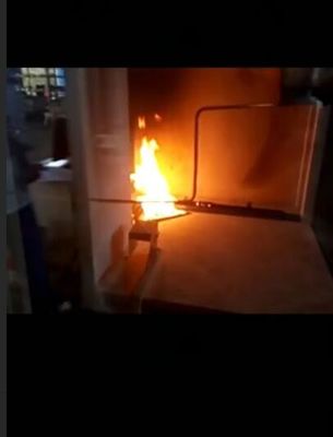 Образец состоя из 2 вертикально двинутых под углом вертикальных крыльев подвергается действию пламени произведенного главной горелкой на дне прямоугольного, пламя произведено сгоранием газа пропана, пропусками газа пропана через горелку ящика с песком и производит (30,7 ± 2,0) kW тепловой мощности.