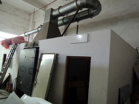 4.At верхняя часть комнаты там собирая клобук и труба дыма соединяя пробуя тубопровод. Продукты отпуска и сгорания жары сгорания образца discharged от выхлопной трубы во время теста.